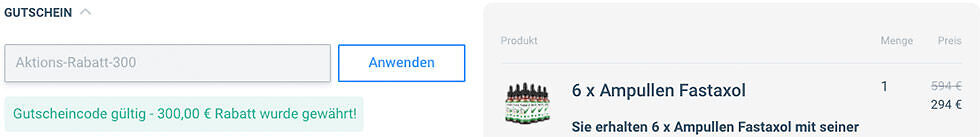 Der Gutschein-Code wird direkt im Bestellformular angewendet.